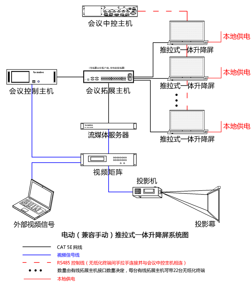3、系統(tǒng)可以擴展第三方網(wǎng)絡(luò)中控,從而實現(xiàn)任意會議終端(經(jīng)過授權(quán))隨時對周邊設(shè)備進行控制;第三方中控可通過RF/RS 485協(xié)議對升降進行統(tǒng)一控制。